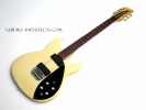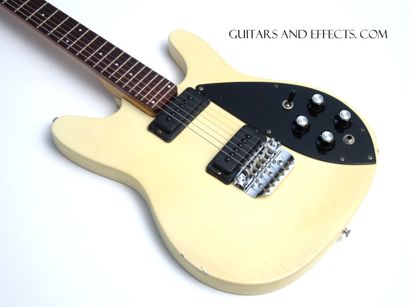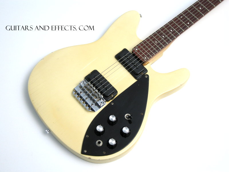 Features Vintage 1975 Solidbody Old relic white refin Black plastic parts 2 high gain Rickenbacker pickups 2 volumes, 2 tones, 3 way pickup selector