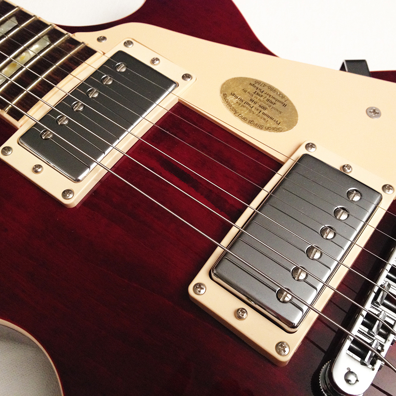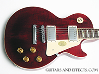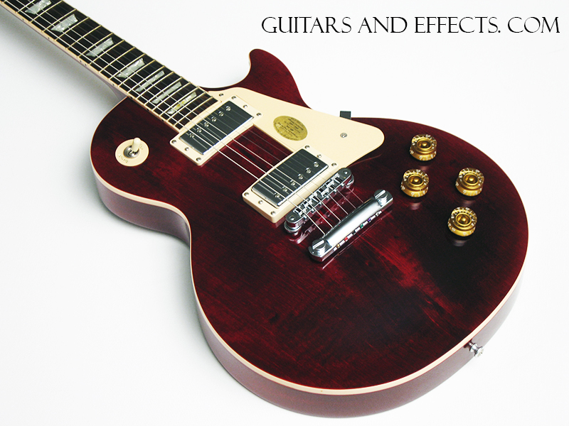 Beautiful transparent Wine Red Les Paul Standard. This one plays and sounds terrific. It is also in outstanding condition. 2001 model, still has the sticker on the pickguard. One teeny ding on the tip of the headstock, otherwise outstanding. You won't find many 13 year old guitars in this condition. Includes original hard shell case.