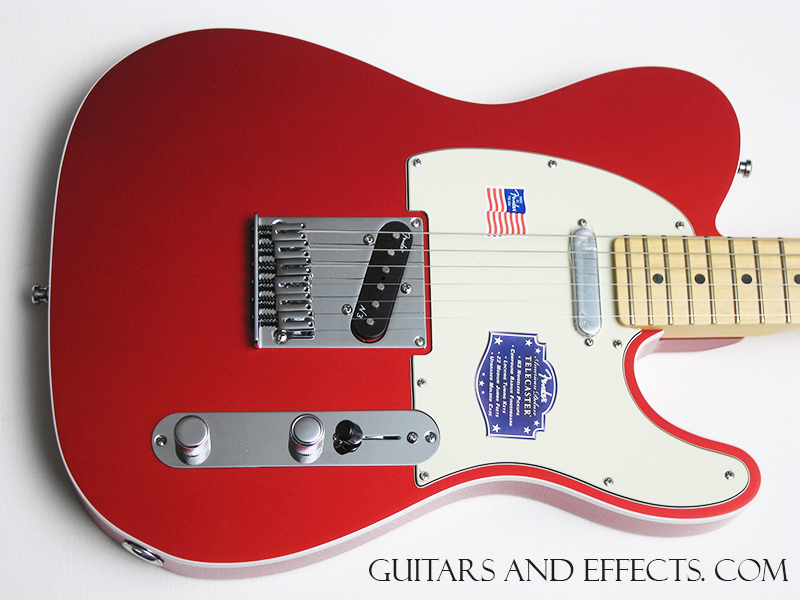 Beautiful Fender American Deluxe Telecaster. This model features top body binding, a contoured "belly cut" on the back and a great sounding set of Fender N3 Noiseless pickups. This example plays and sounds great. It has a few small indents on the back of the neck, presumably from a guitar stand, otherwise excellent condition. Still has its clear protective plastic on the pickguard. Includes Fender hard shell case.