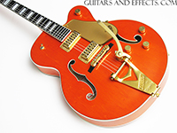 Beautiful Gretsch 6120 model. This example plays great with low easy action and the tone is everything you could ever want from a Gretsch. It is starting to age nicely for a 21 year old instrument with some clear coat / play wear. Overall excellent condition. Includes original hard shell case.