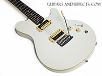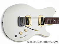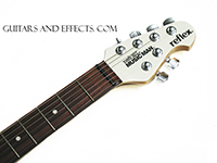 Hard to find version of the Music Man Reflex with exposed coil Dimarzio pickups and tremolo bridge. This example plays and sounds great. Low action, terrific tone. Excellent condition. Includes original hard shell case.