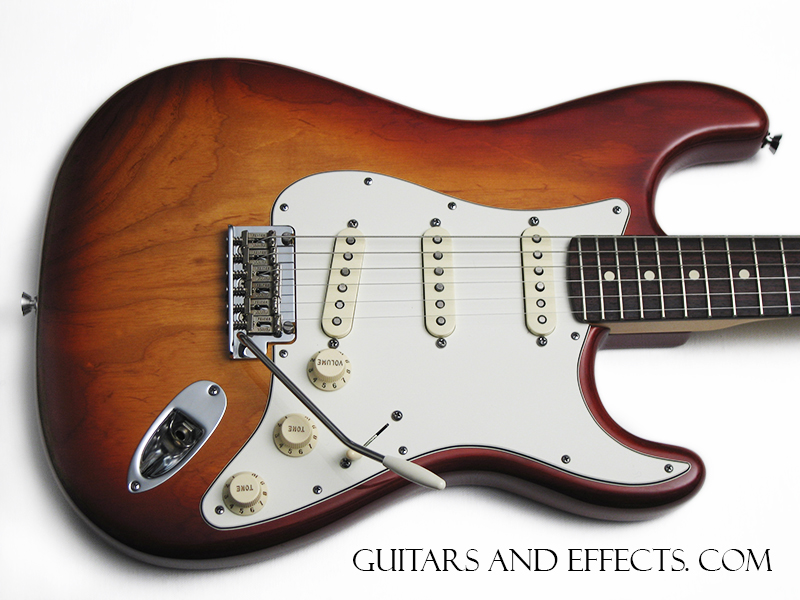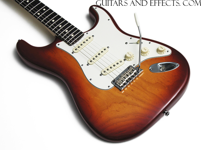 American Sienna Sunburst Ash body Stratocaster. This one plays great with low easy action and has excellent tone. Excellent condition showing only light play wear. Includes original hard shell case.