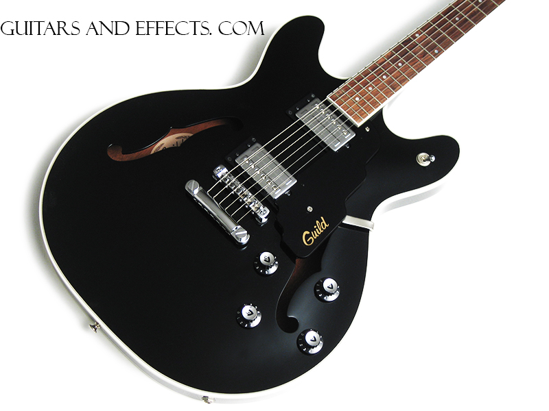 Here is a fantastic example of a Guild Starfire IV. Factory black finish, 2 pickups, stop tailpiece. This one is in excellent condition. It plays, sounds, and looks great. USA made Guild guitars are much better quality than the newer import Guild guitars. Includes its original hard shell case.