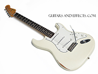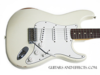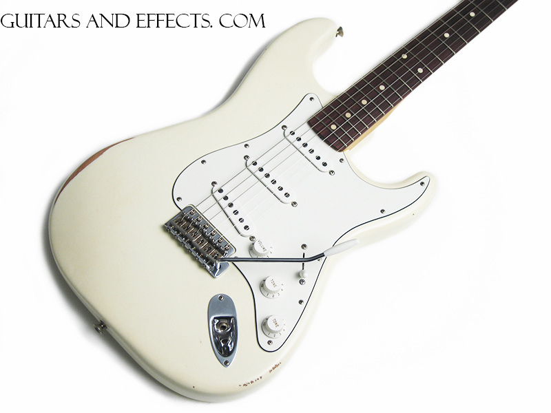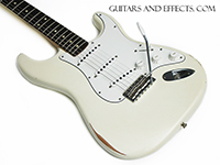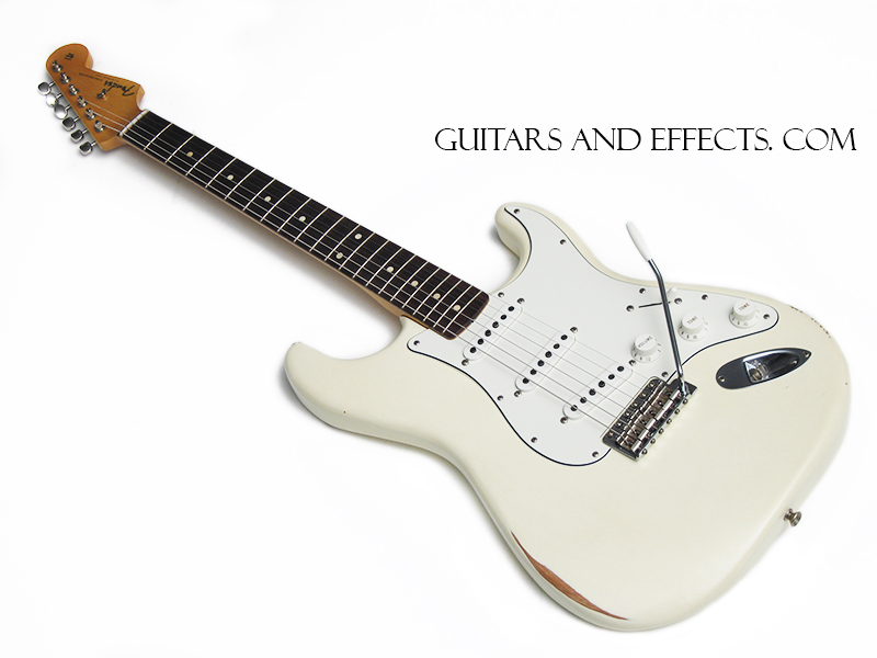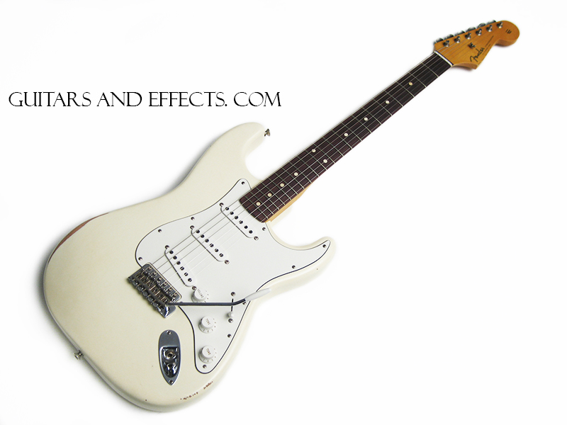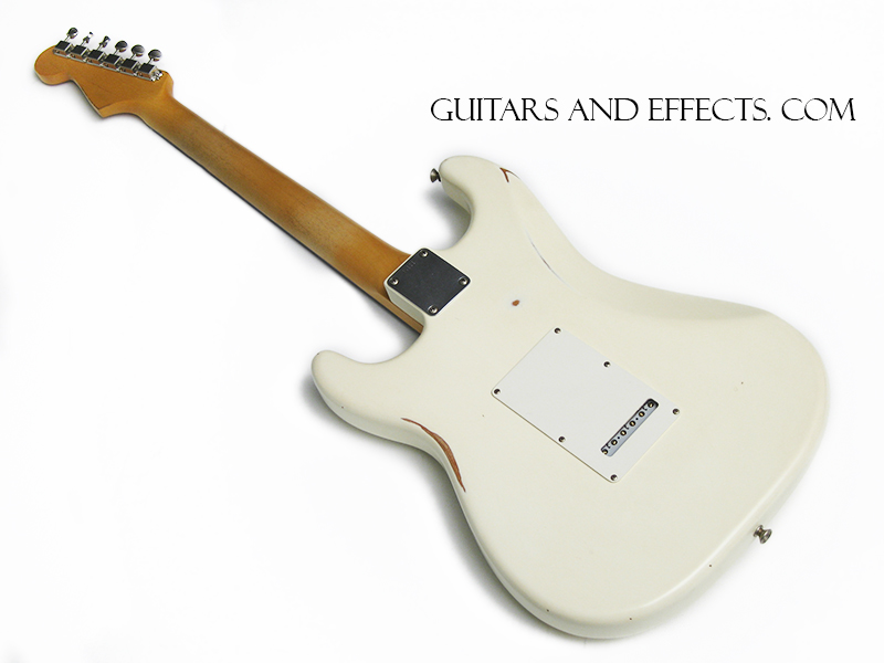 click for picture ] , White pickguard, pickup covers, knobs, switch tip, and trem cover, Custom engraved / aged neck plate with 1961 serial number, Callaham bridge block for increased sustain. This is a fantastic guitar. Looks, plays, and sounds great. Includes Fender gig bag.