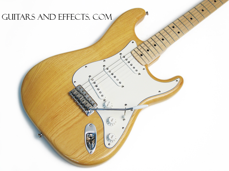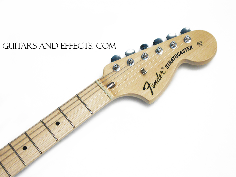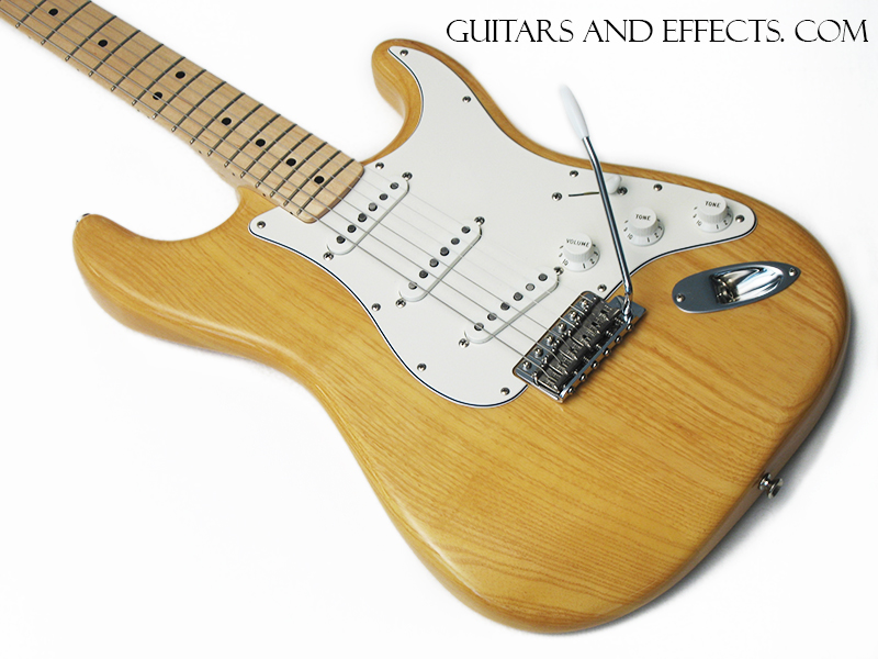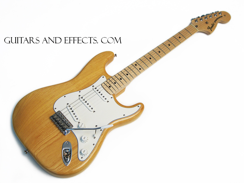 Fender 70s USA Vintage Reissue Strat. This one has all of the cool features. Big headstock, bullet truss rod, 3 bolt neck plate, and maple neck. It plays great with low easy action and has terrific tone. Like many Strats, this one has a small clear coat "check line" by the neck pocket. [ Extra Picture #1 ] Cosmetic only, not structural. Overall very clean / excellent condition. Includes original hard shell case.