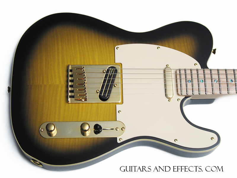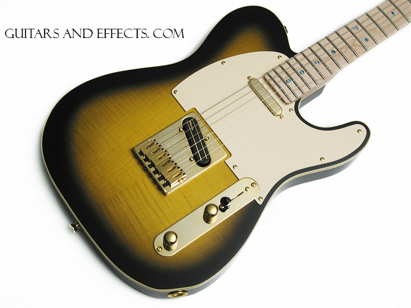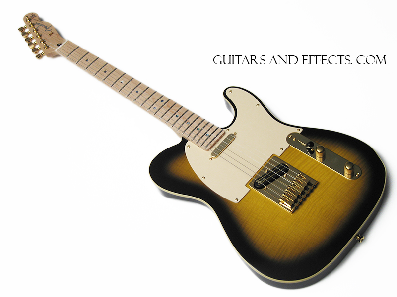 Fender Richie Kotzen Telecaster. This model comes with a great looking flame maple top, gold hardware, and DiMarzio Twang King and Chopper T pickups. This example looks, plays, and sounds fantastic. Excellent condition with its clear protective plastic still on the pickguard. Includes a free gig.