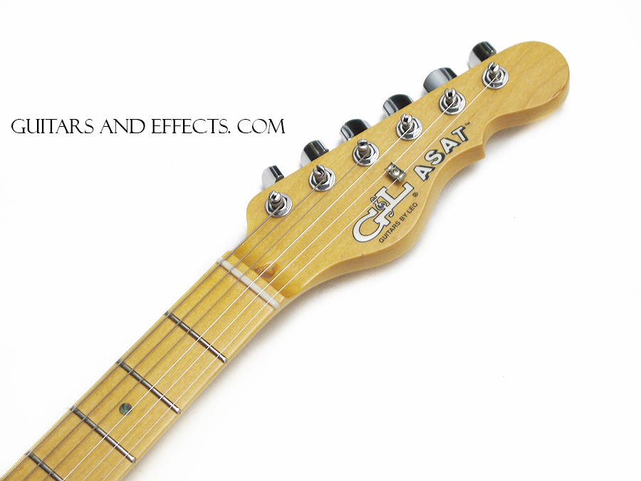 Beautiful USA G&L ASAT Special with Pine body. This is a very unique instrument. Special order G&L S-500 pickup in the middle position, 5 way pickup selector, and push / pull tone knob. This setup along with the MFD neck and bridge pickups really offer a wide array of tonal possibilities. There is a small ding on the back of the neck. [ shown in picture below ], otherwise excellent condition. Includes G&L hard shell case. $799.99 |