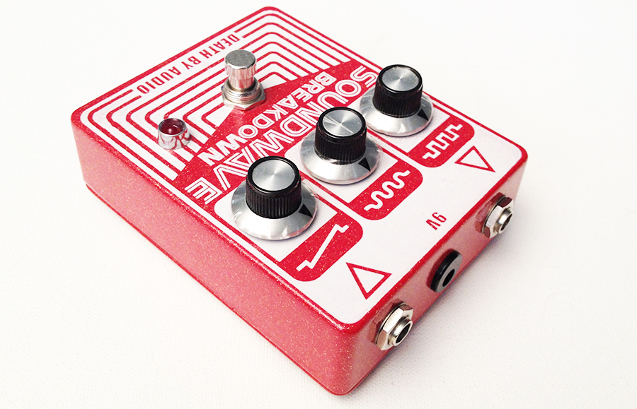 The Soundwave Breakdown takes the idea of a screaming fuzz pedal and turns it inside out. It uses specially matched transistors turned backwards to get it's bombastic sound. The one knob controls extreme biasing of one of the transistors and the other controls intense filtering. Although this sounds simple the results are perplexing. The combination of allow a vast universe of fuzz | distortion | overdive | buzz | grind | bleeps | synth sounds | harmonies | and soundwave manipulation. The exact positions of the knobs yeild completely different sounds for endless great insane fuzz tones. Be forewarned, there is no volume control on this beast, it is only balls to the wall fuzz and does not clean up when the volume control on your guitar is turned down or anything foolish like that. This is rock and roll inspiration, and damn it feels good. |