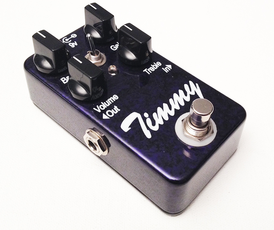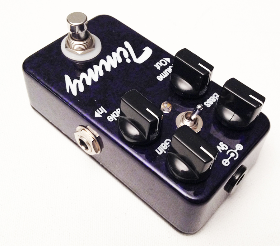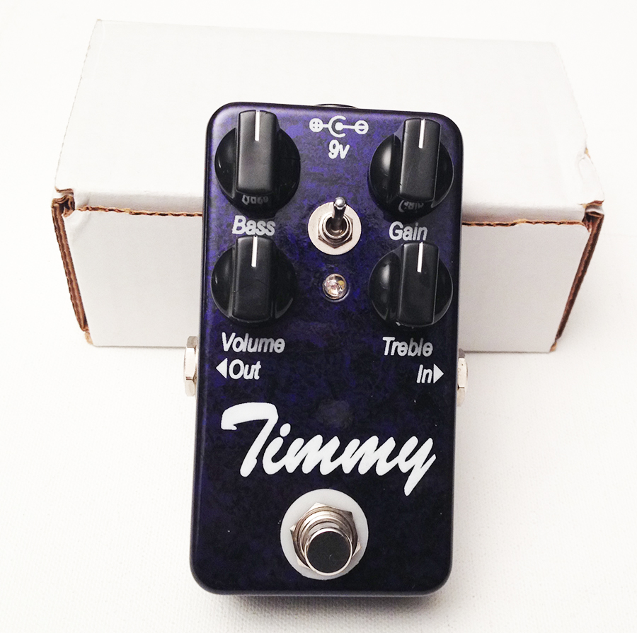 The Tim pedal's little brother with all of the tone of its larger sibling, but lacking the send and return jacks as well as the boost channel and boost controls. For those desiring Tim tone in a simpler, more space efficient size.A pedal of near mythic proportions, the Timmy pedal works in conjunction with your amplifier's natural tone to add anything from a mild boost to a strong overdrive without changing the overall character or architecture of your favorite amp's inherent tone.A wonderful, natural enhancement to your tone that is extremely organic.At low settings you will be able to effortlessly achieve a sound that is simply "more" of what your amp already offers. As the gain is turned up, and the pedal's EQ adjusted accordingly, smooth, singing, round and reedy tones are at your fingertips.The Timmy pedal's responsiveness is exactly like that of a great, tube amplifier in that it responds immediately to your right hand's attack. FEATURES 9 Volt battery or AC adapter operation Controls: Gain, Bass, Treble, Volume Amazing tone and touch sensitivity Internal dip switches mirror the push/pull pot on the rear of the Tim pedal for selectable modes of more gain or asymmetrical clipping |