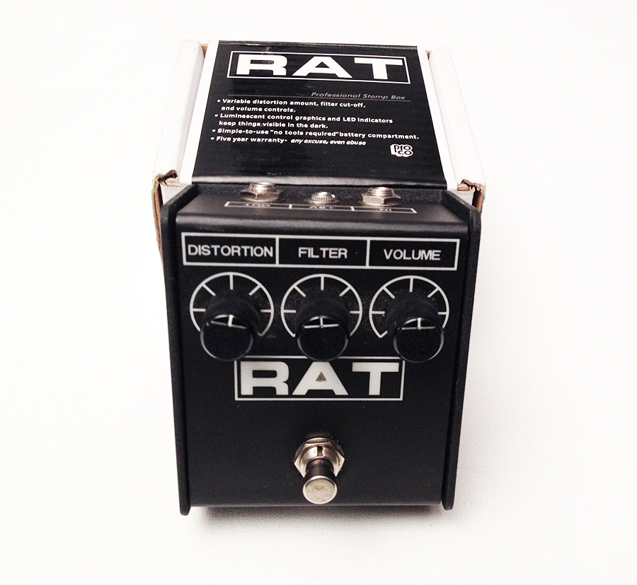 Proco Rat2 Distortion PedalDo you straddle the fine line between the traditional guitarist and the constant innovator? Are you just as comfortable laying back in the pocket as you are taking a solo with a foot up on the monitor? If this sounds like you, The RAT 2 will be your go-to distortion pedal for every gig, whether it's rock, blues, punk, or jazz.This is the classic RAT tone. The standard that all other distortion devices are measured against. Heard on thousands of recordings, it has helped define the sound of the past three decade's most influential bands. The beauty of the RAT 2 lies in its versatility. Used as a primary distortion, it excels at arena rock rhythm tones and soaring leads. Do you have a powerful amp with too much headroom for the gig? The RAT 2 nails that sweet spot where a tube amp goes from sparkly clean to warm overdrive. Maybe you already love your amp's distortion. Use the RAT 2 as a boost for solos and get the extra kick you need. The RAT 2 features the legendary the legendary RAT Filter control. Turn it to the right to roll off brittle high-end frequencies. Having trouble cutting through the mix? Turn the Filter down and allow the natural brightness of your instrument to shine through. The Distortion and Volume controls dial in the perfect amount of gain while keeping the level consistent with your clean tone. While there's no mistaking the legendary RAT tone when the pedal is on, true bypass switching guarantees that no extra noise will creep into your signal when it's turned off. Features:- 100% analog signal path- Pro Co's classic, virtually indestructible steel enclosure - Heavy-duty, industrial footswitches, knobs, and jacks - On/Off LED indicator - Sloped face for easy stomping - Glow in the dark graphics - Military-spec glass-epoxy circuit board - AC jack (RPS-1 power supply sold separately) - "No tools required" battery compartment (9 volt not included)