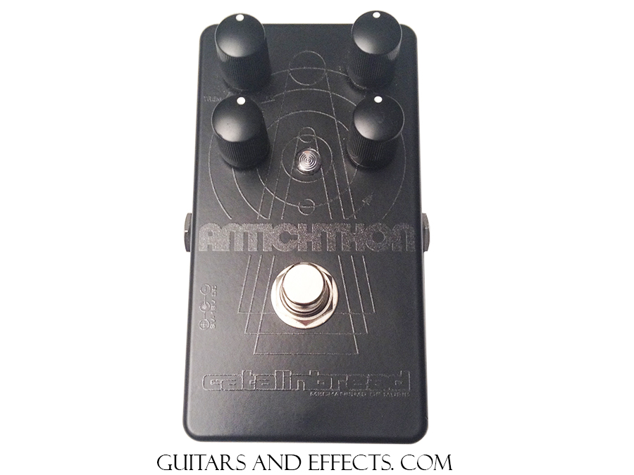 For starters, the Antichthon is controlled by the guitar’s volume knob, instead of by the knobs on the pedal. The guitar’s volume knob is more of an expression control than the pedal’s dials, which are meant to be set and left alone. The core of the Antichthon is three separate modes that can be achieved through different knob settings, then controlled by the guitar. Mode 1 is a dynamic fuzzed-out tremolo. The guitar’s volume knob controls the speed and sound of the tremolo instead of the pedal’s actual controls. The tremolo is very interesting, it’s very choppy and rhythmic, an effect that is certainly apropos to the concept of opposites. The fuzz sound itself is full of even-order harmonics, so it never sounds cloying or harsh. Mode 2 is an otherworldly tone generator, and it will work without any input from the player. However, it’s when you add in your guitar’s signal that makes it interesting. Your guitar and the pedal’s tone meld together to create all sorts of interesting and inspiring sounds. From sub-bass tones to piercing horn sounds, there isn’t much outside the realm of possibility. Mode 3 is a harmonic fuzz-overdrive. This setting is more familiar, and usually seems like an add-on to some of the more “experimental” effects out there. However, this one is truly great, like a time portal back to our Earth and more familiar surroundings. Catalinbread Antichthon Features: