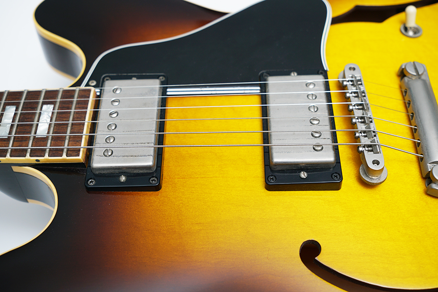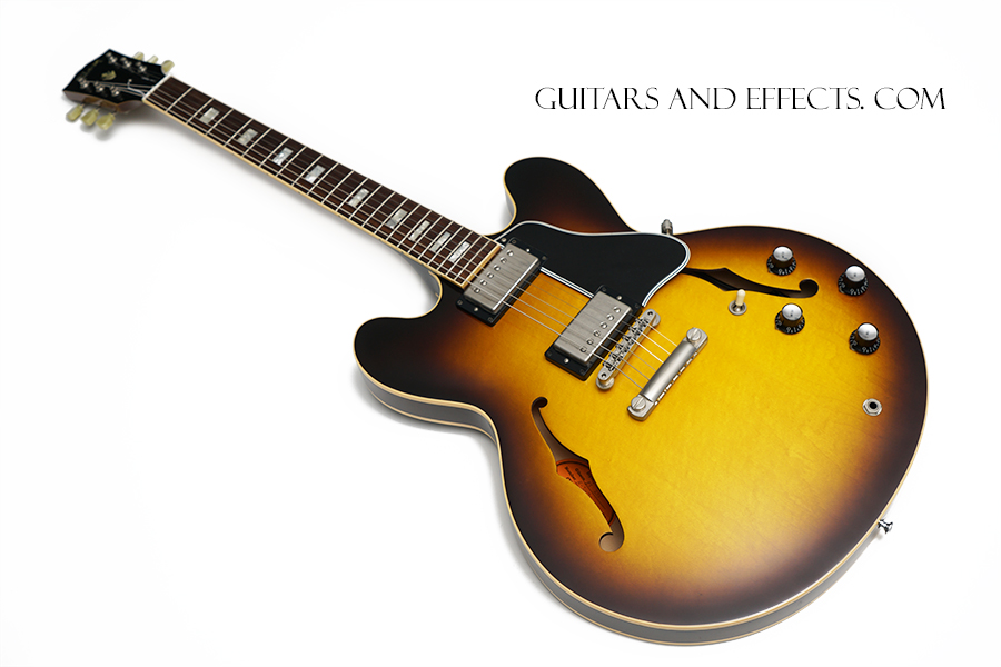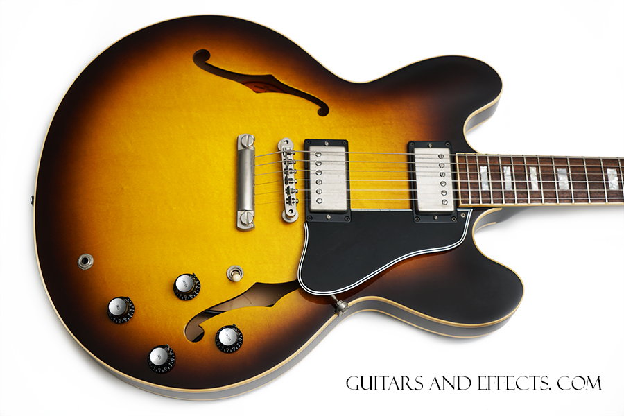 Nashville built, Custom Shop, 1963 Reissue es-335. This one plays great with low easy action and sounds amazing. On close inspection it shows some "guitar stand rash" on the bottom edge of the body and back of the neck. Otherwise just normal play wear. Overall a fantastic looking 335. Includes original hard shell case and COA. $2799.99 |