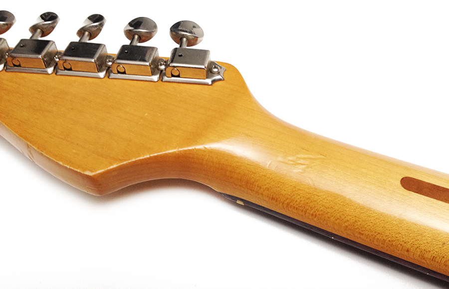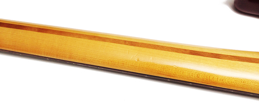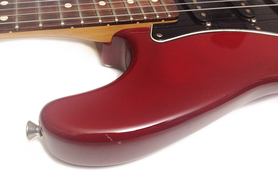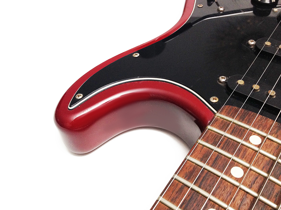 This model MIM Strat is somewhat hard to find. It features a HSS pickup configuration, 1 volume, 1 tone, 5 way pickup selector, and a coil tap switch for the bridge pickup. Plays and sounds nice. It shows a few dings, finish and pick scratches, and oxidation on the pickup poles and bridge saddles. Think "light relic". Overall a very nice looking pre-owned guitar with some natural wear and mojo. Includes a free gig bag. $375.00 |