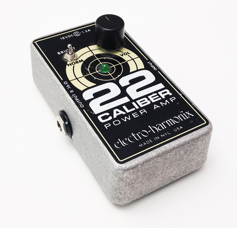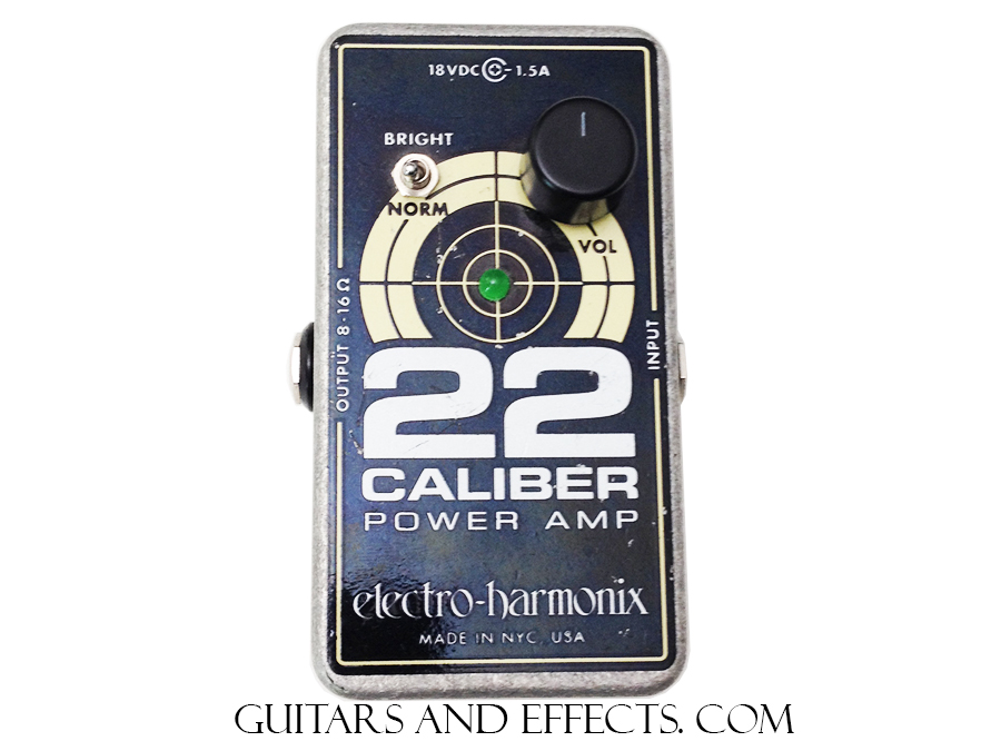 The Electro-Harmonix 22 Caliber Power Amp is a versatile 22W guitar head that fits in the palm of your hand. Its excellent tone and extreme portability guarantees it a spot among your mainstays for performance, rehearsals, or recording. The 22 Caliber delivers everything that you would expect in a much larger amplifier. Though the input and gain structure was optimized for guitar it will work great with other instruments as well. Just plug it into any 4-, 8- or 16-Ohm speaker, and you'll get a big, sweet musical sound. Crank the 22 Caliber's volume, and it'll go into overdrive—like a vintage amp with a single volume control. Flip on the bright switch to add some bite and definition.