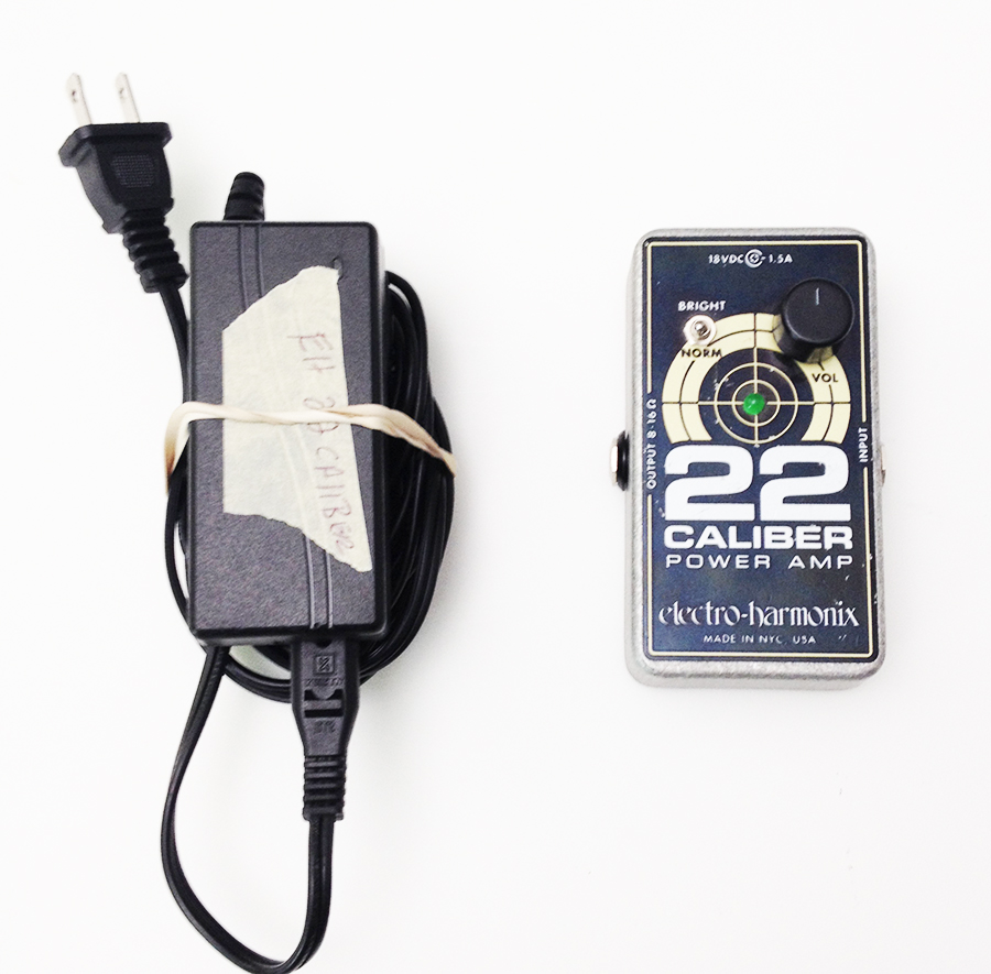 Plug the output of your guitar, effects pedals, or any other instrument into the input jack using a standard 1/4" instrument cable. Connect the 22 Caliber's output jack directly into almost any speaker cabinet. Use a speaker cable between the Electro-Harmonix 22 Caliber and speaker cabinet as you would with any power amplifier, though you can get away with using an instrument cable if absolutely necessary. Additionally the speaker cabinet must have a power rating equal to or greater than the 22 Caliber's output power capability. A speaker cabinet with a 30W rating is recommended. Electro-Harmonix has always been a supporter of the portable musician, particularly when it comes to amplification. The 22 Caliber power amp surely proves that great things come in small packages.
