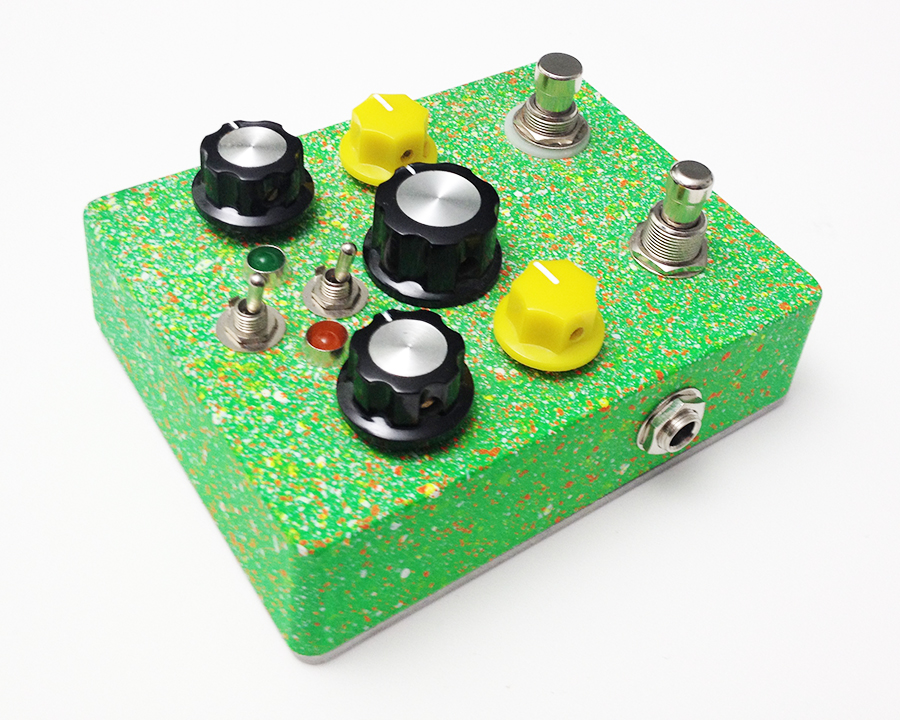 Sounds great with guitar or bassThe top switch toggles between a light tremolo type effect and a more gated pulsing drone effect. The lower switch toggles between a square wave and more of a triangle wave shape. The right latching footswitch turns on the fuzz effect / the left momentary switch turns on the gated drone / tremolo effect (note trem/drone effect only works with fuzz engaged) True Bypass / Neutrik Jacks 9V DC Power Only (Standard Center-Pin-Negative Boss Type Adapter) (not included) Each unit is hand made, numbered, and hand painted with one-of-a kind artwork by Mattoverse in Wisconsin, USA. |