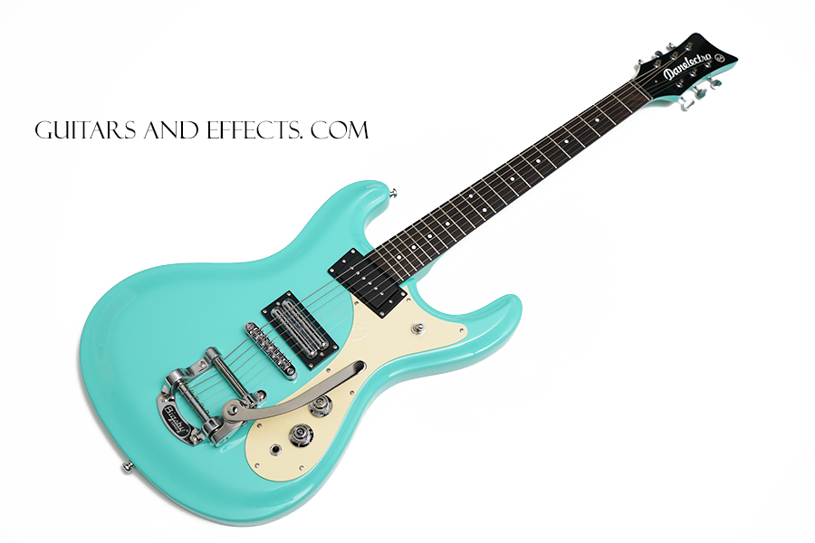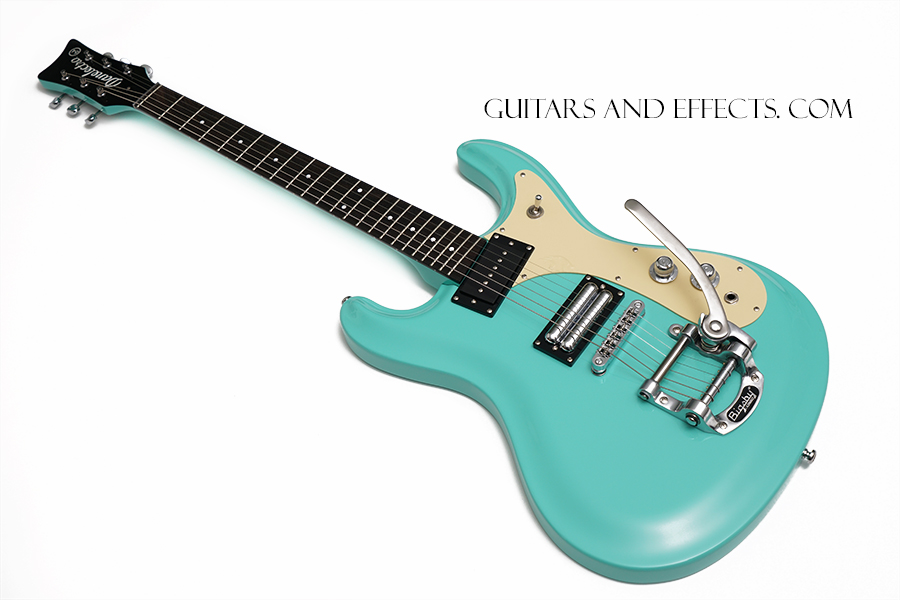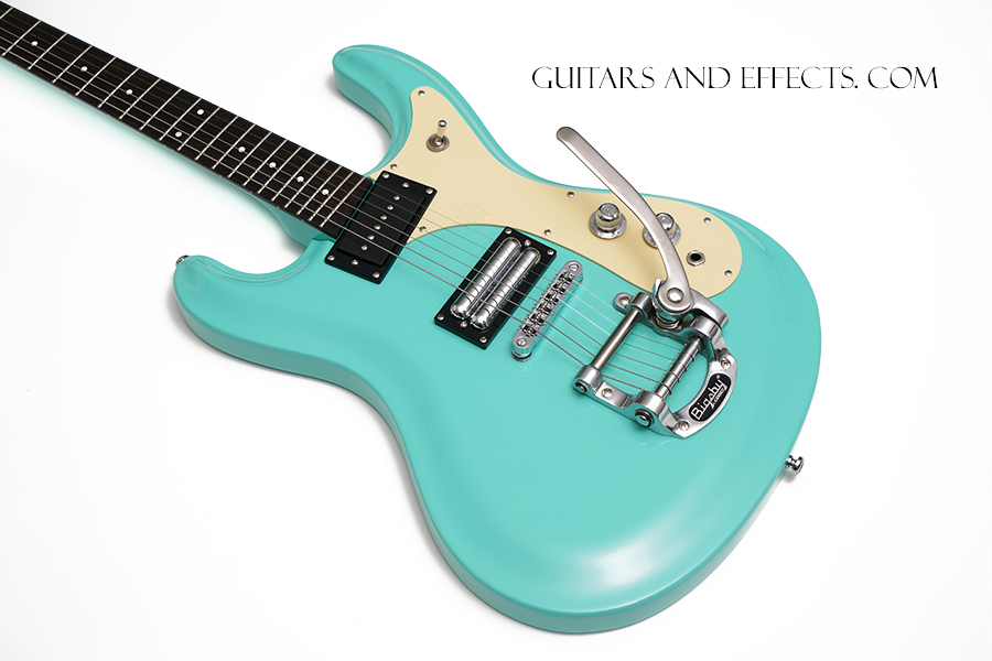 FEATURES Body: Reversed double cutaway offset horn shape Frets: 22 Bridge: Fully adjustable roller bridge with Bigsby vibrato Pickups: Bridge: 1 dual humbucking Lipstick Neck: 1 vintage style large housing single coil Controls: 3-way pickup switch, master tone, master volume Hardware Finish: Chrome