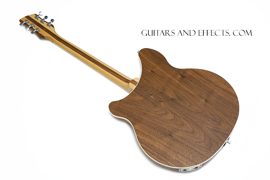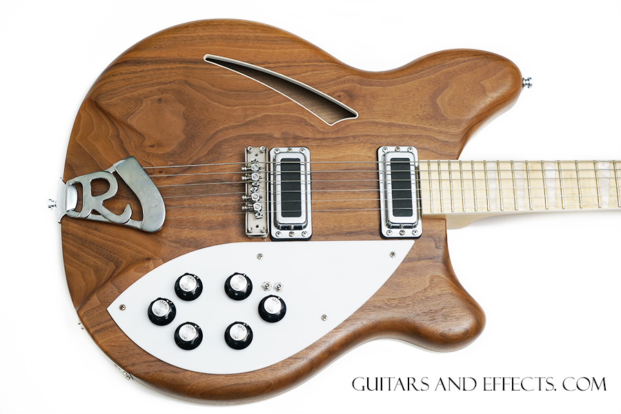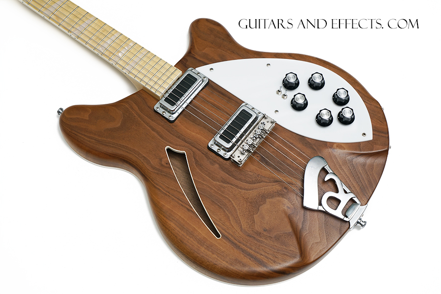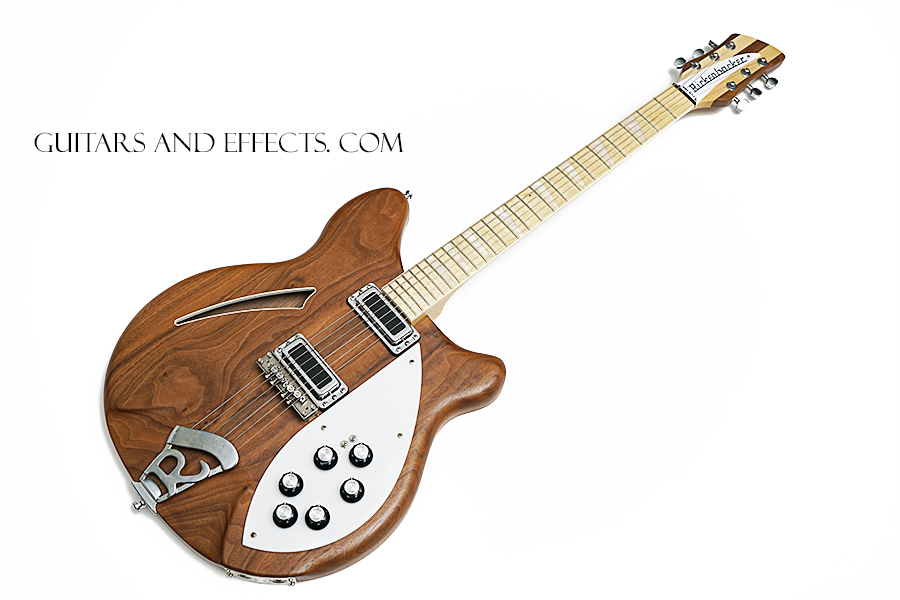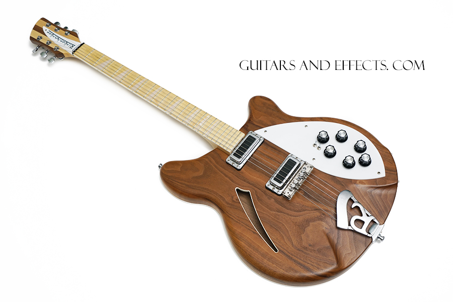 This one is really cool. Rickenbacker 360W. It has a clear satin finish on a walnut body with a maple fretboard. It also has some very choice / expensive upgrades that include a Mastery Bridge, Lollar Broiler pickups, Locking tuners, and custom electronics. This is a great playing guitar with a lot of different tone options. Excellent condition showing some normal play wear on close inspection. Includes original hard shell case. $1699.99 |