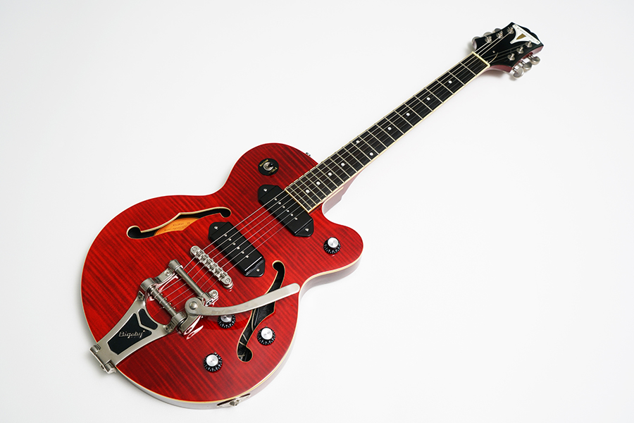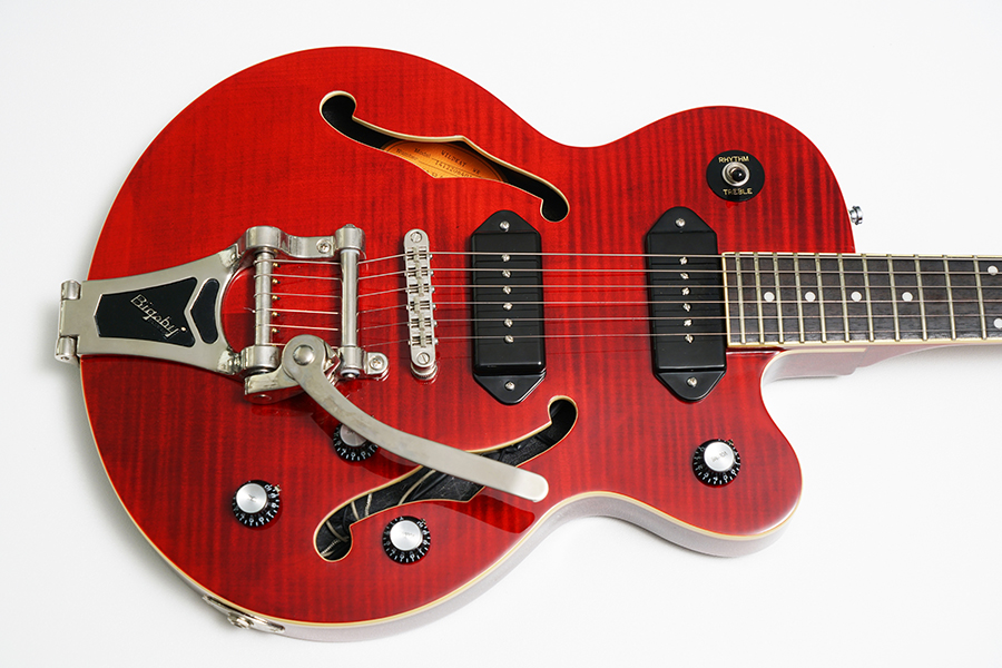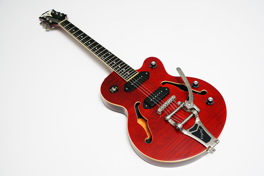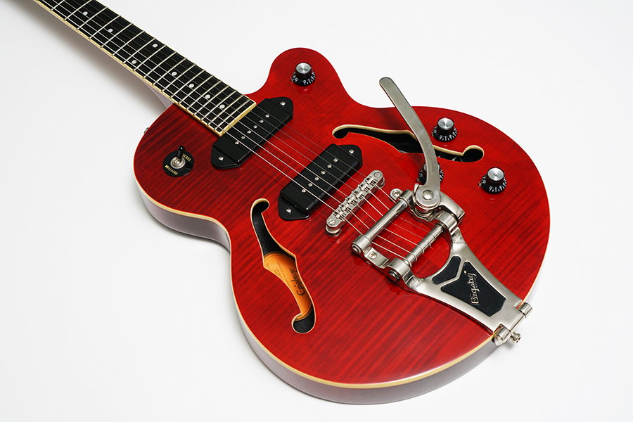 Very nice Epiphone Wildkat that has been upgraded with Lollar P-90 pickups. Lollar pickups are a big improvement over the stock pickups. Looks, plays, and sounds great. Very good condition showing some normal play wear on close inspection. Includes hardshell case. |