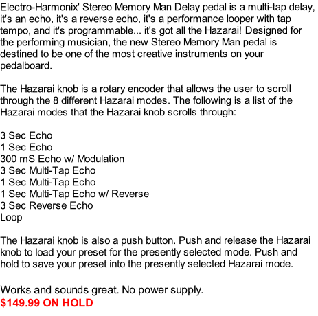 Harmonix XO Stereo Memory Man with Hazarai Delay