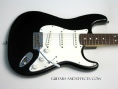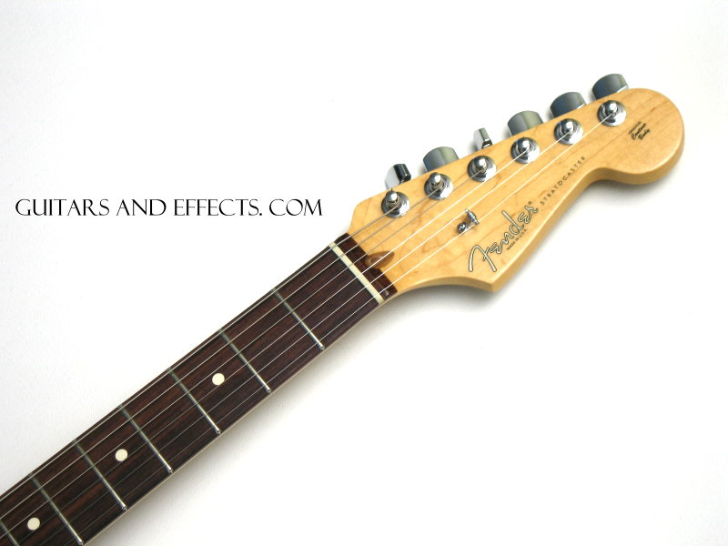 Features 2010 USA Model Black Finish Solid alder body (urethane finish) Modern C-shaped maple neck Rosewood Fretboard 22 medium jumbo frets 3 hot American Strat single-coil pickups Delta-tone™ no-load circuit (includes high output bridge pickup and special no-load tone control for middle and bridge pickups) Bent steel Fender saddles Copper Infused Cast Strat® Bridge Block (steel with copper- 100% metal) for Increased Mass and Improved Tone Thinner undercoat for improved body resonance American 2-point trem Staggered machine heads