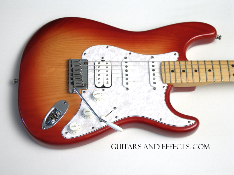 This USA model has been out of production for a while now and has became very desirable on the used market because of the cool and unique features it offers. It is a very versatile guitar. It will do everything from classic Strat blues tone to thicker Les Paul style sounds. Great for the player who needs a lot of different sounds from one instrument. It features Texas Special pickups in the middle and neck position and a Seymour Duncan Pearly Gates humbucker in the bridge position. This example also features an Ash body which was a $150 upgrade at the time. This one shows some minor clear coat wear. Overall a great looking example. Includes original Fender hard shell case. $799.99