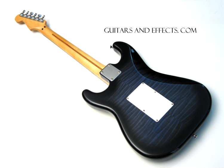 Here is an extremely cool 1994 MIJ Foto Flame HSS Floyd Rose Strat. Fender didn’t offer this model very long and they are pretty hard to find. This one plays great. If you need a more beefy tone from your Strat and like to do dive bomb whammy bar action, this is your axe. It has a some minor clear coat wear, overall an excellent looking example. Includes a free hard shell case.