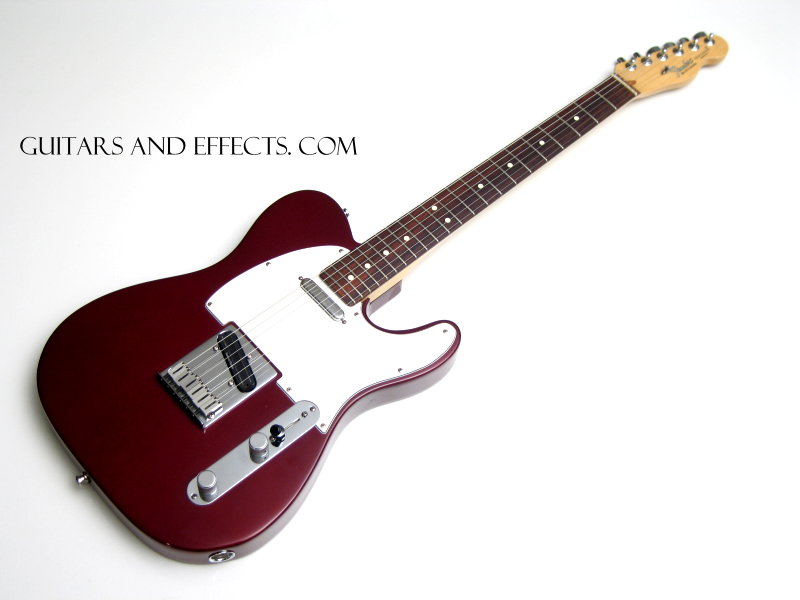 Here is a great looking 17 year old American Telecaster finished in a very cool Midnight Wine finish. It has been upgraded with a Seymour Duncan Rail bridge pickup which offers a nice hot output. It had changed tuners at one time but now the original are back, otherwise just normal wear that you would expect from a well loved but played example. Includes a beat Fender hard shell case.