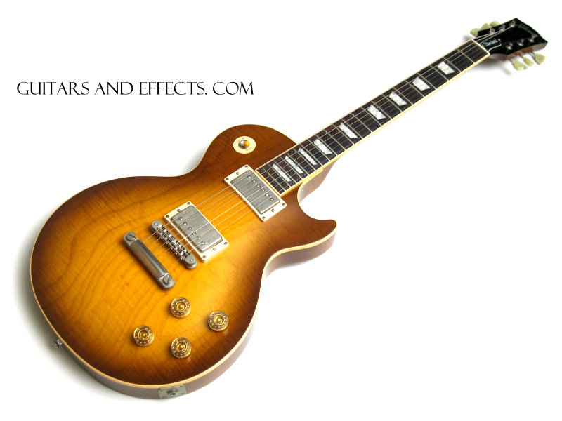 Here is a superb playing / sounding Gibson Les Paul Standard Flame Top. The top on this one looks even better in person than in the pictures. It is an 11 year old guitar, so it has some cosmetic player wear. A small touched up ding on the front of the headstock, some clear coat scratches on the back, and tarnish to the nickle hardware. Nothing serious, just not for the uber picky collector type. No breaks, repairs, or issues of any kind. It is a rock solid player and a beautiful instrument. Perfect Les Paul Flame Top that you can actually take out of the house and gig with. Includes a Gibson hard shell case.