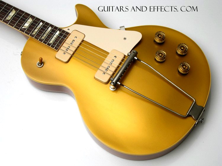 Chunky neck, 2 Screaming P-90 pickups, Gold Top finish, and a factory Trapeze Tailpiece / Bridge. This guitar is awesome. It looks, plays, and sounds amazing...plus it is impossible to find. A few tiny clear coat indents and minor play wear, overall a great looking example of this super rare model. Includes Gibson hard shell case.