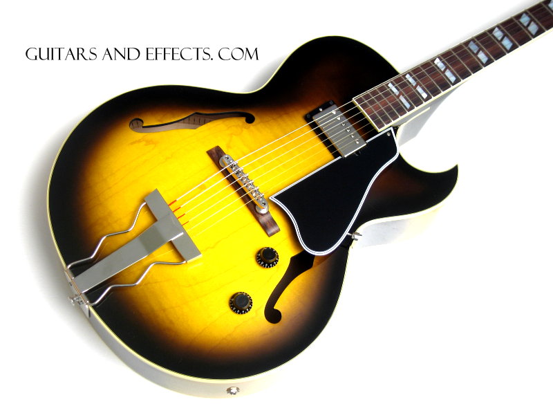 Features USA 2006 Model Sunburst Finish Solid mahogany neck Rosewood fingerboard Arched figured maple top, sides and back. Bound single cutaway body Dual-parallelogram mother of pearl fingerboard