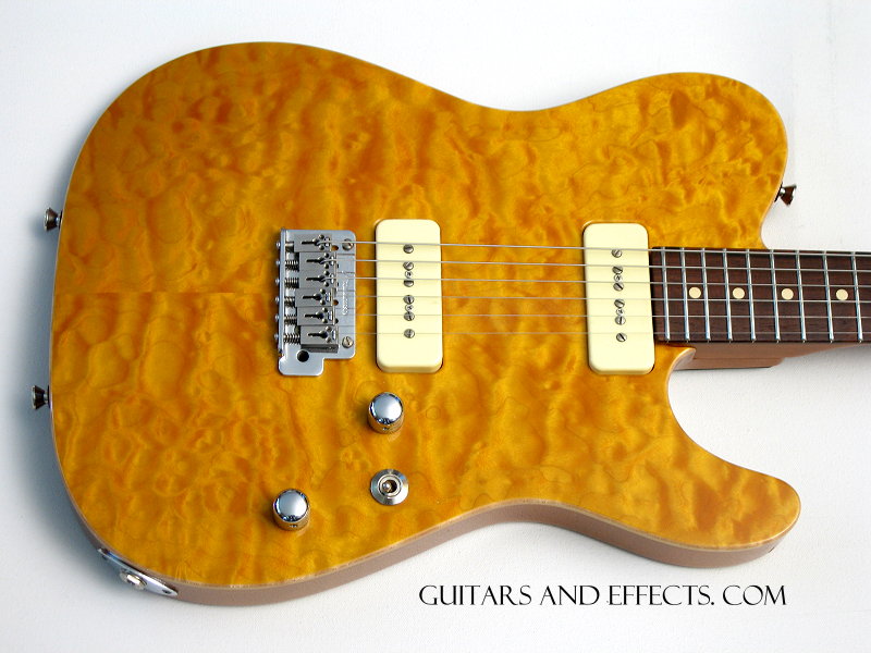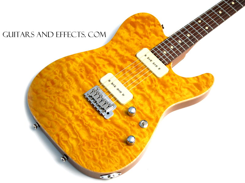 WOW !!! check out the top on this one. This guitar plays and sounds as good, if not better than it looks. Super low action. The P-90 style pickups in this guitar scream. Truly an amazing sounding instrument. Super clean condition. Includes a Fender / SKB hard shell case. This guitar is a winner.