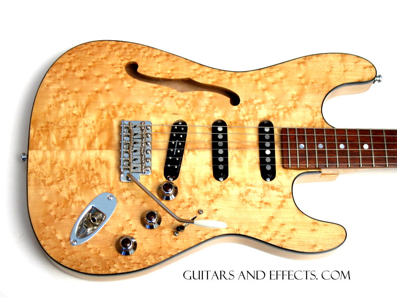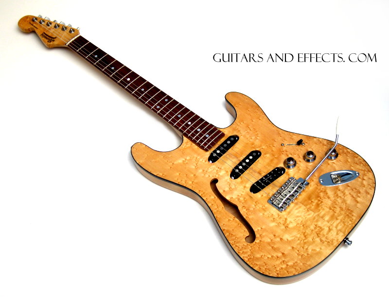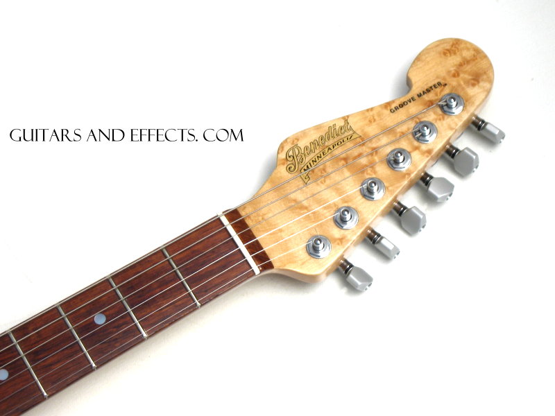 With heavy weight artist such as Johnny Lang and Stevie Ray Vaughan, it is hard to deny the overwhelming quality, craftsmanship, playability, and tone a Benedict Custom guitar can offer. This example was just custom ordered and is an outstanding instrument in every respect. It features a semi hollow, highly figured Strat style body with an F hole and black body binding, maple neck with rosewood fingerboard, large frets, reverse headstock, locking Sperzel tuners, single coil neck and bridge pickup, Seymour Duncan bridge pickup, one volume, 2 tones, and a 3 way pickup selector. This guitar looks, plays, and sounds perfection. Super clean condition, the BEST !!!. There is a long waiting list to get a custom Benedict guitar, this one is ready roll. Priced fairly, and of course we are always interested in trades !! Includes its original hard shell case.