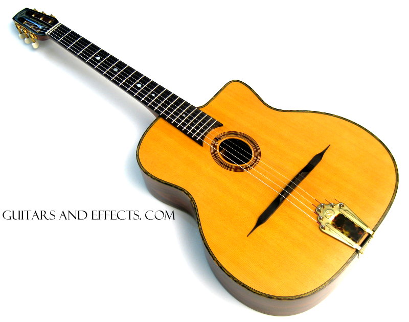 Here is a beautiful John Jorgenson Signature Model Selmer-Maccaferri Style Jazz Guitar. It looks, plays, and sounds absolutely amazing. We don’t normally deal in any type of acoustic guitars here at Guitars And Effects, but this guitar is one we had to have. You will love the incredible tone of this magnificent instrument. Includes its original hard shell case.
